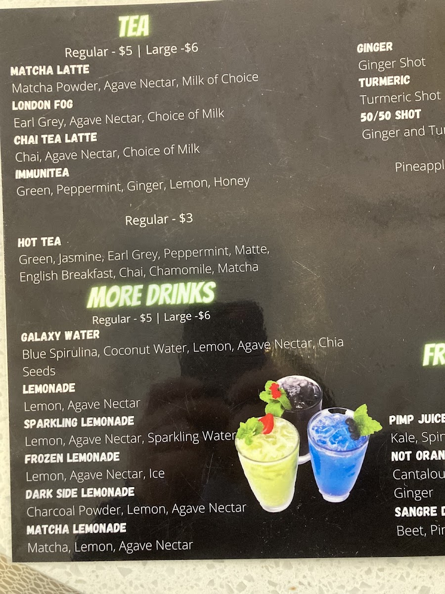 Base: Matcha Powder, Coconut Milk, Banana, Pineapple, Spinach, Lemon Juice, Agave Nectar